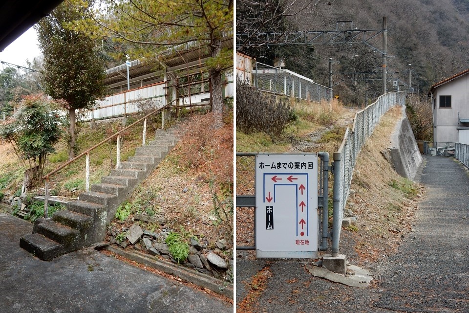 しかし改札の前から直接にホームへ上がれる構造ではなく、通路を