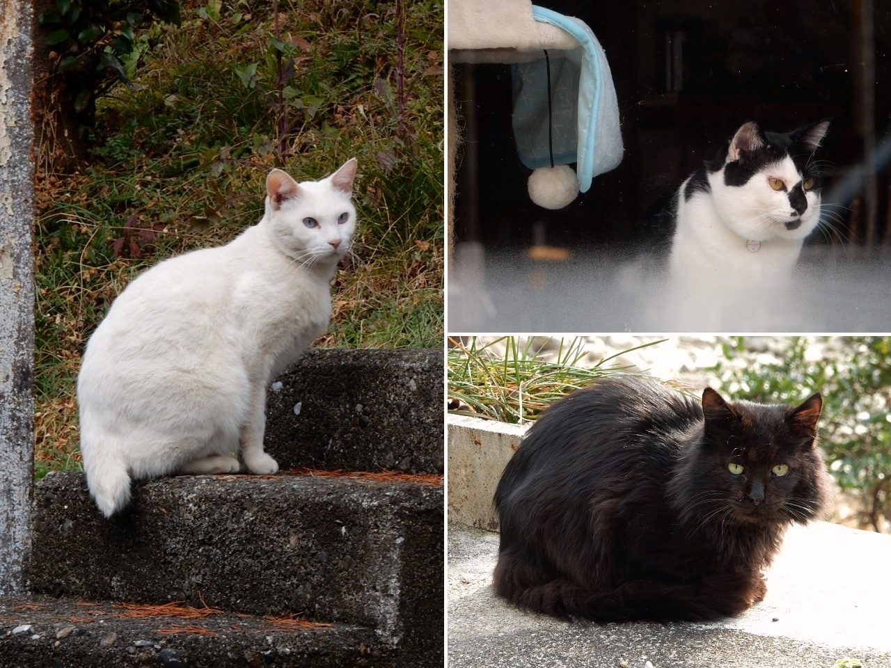 右上の個性的な配色の子は飼い猫のようで、ガラス越しの室内