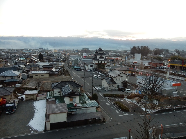 離れた高台にあります。右がホテルからの眺めですが長野県にも海は