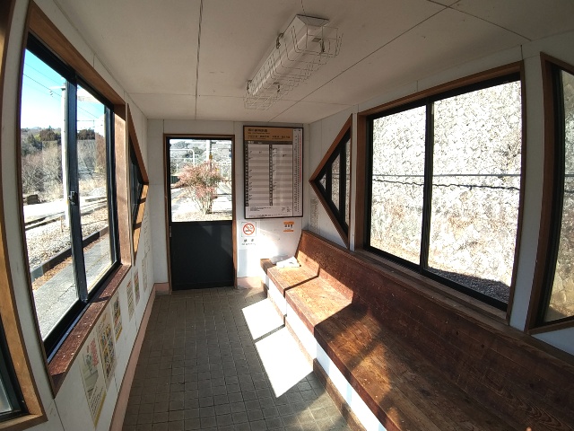 駅ノートはソノ待合室内にあります。窓が大きいから陽が射すと室温