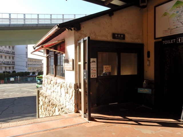 待合室自体は改札外にありますが、利用はケーブルカーの乗客に