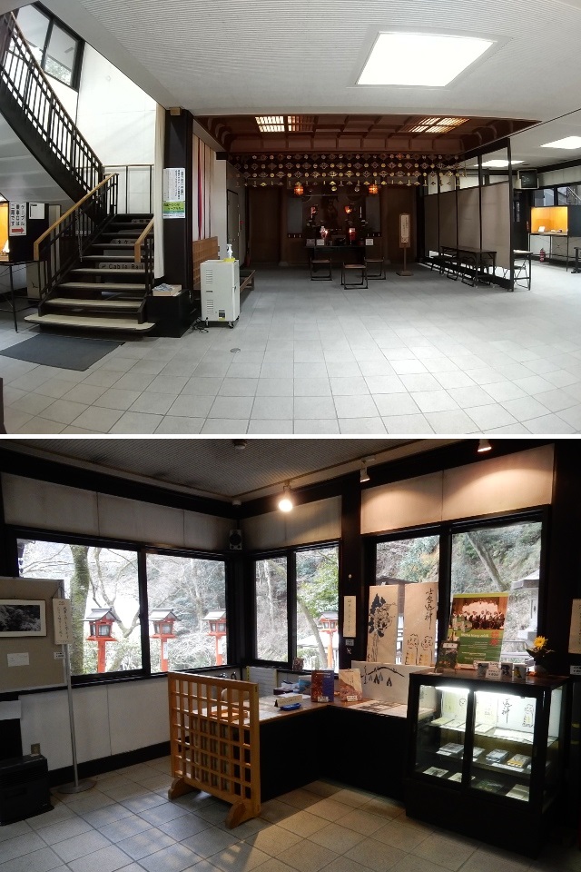 参拝記念のメッセージ用のノート)がある普明殿にも常駐の係員さん