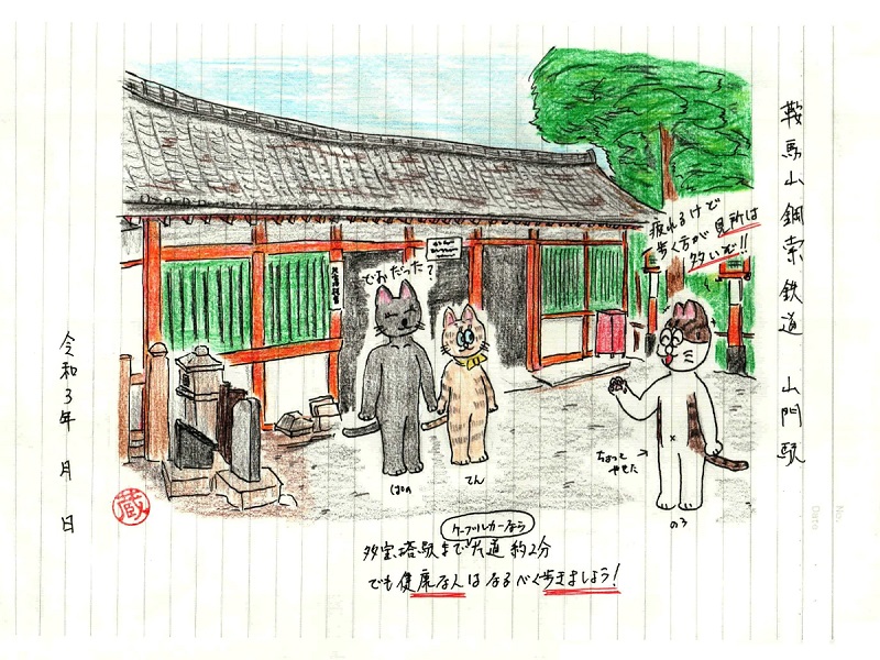 今回は山上側の多宝塔駅を描いてみました。…乗り潰しをやってた