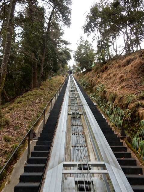 麓側の山門駅から高低差89mの多宝塔駅を約2分で結んでいます。