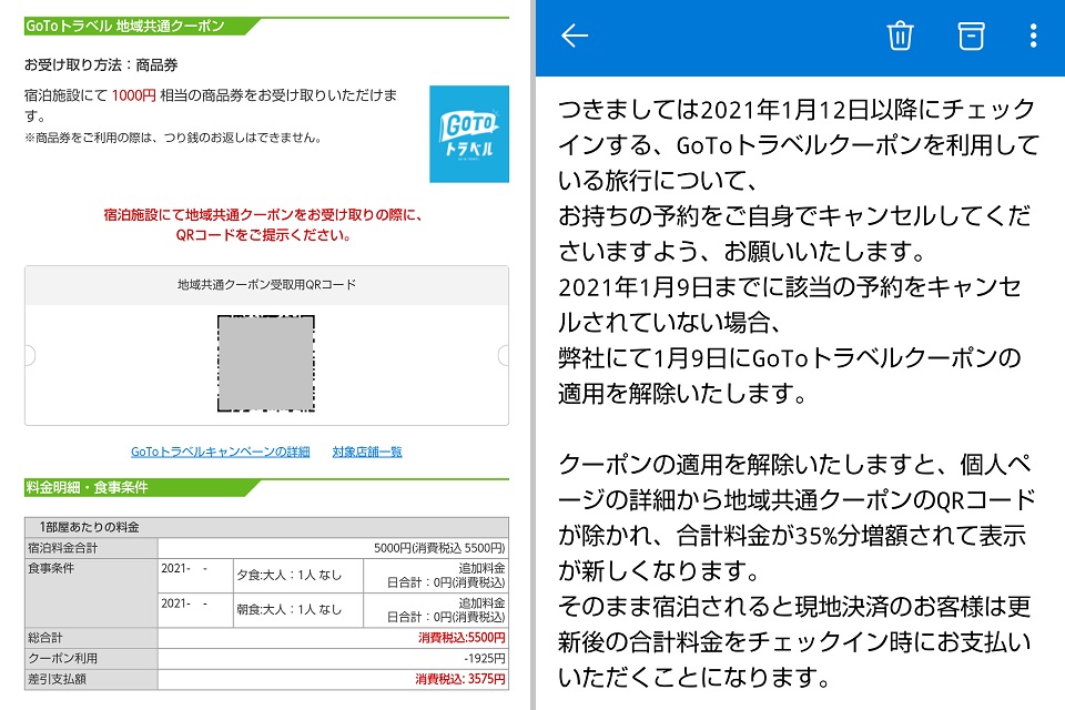 楽天トラベルで申し込んだ後にGo to キャンペーンの中止期間が延長