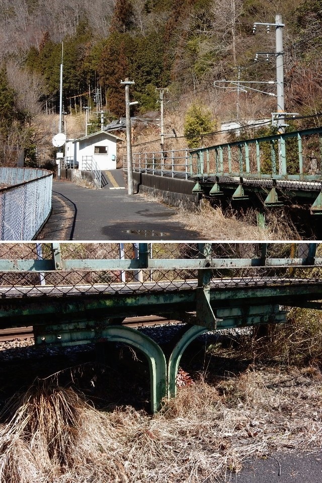 途中で継ぎ足されたようになってるホームの脚が廃レールを再利用