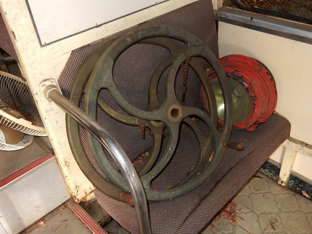 車両の前後にある、大きなブレーキハンドルが置かれてました。