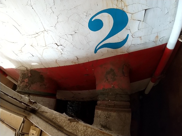2両あるうちの下側の車両は扉が開いたままなので、車内に入る