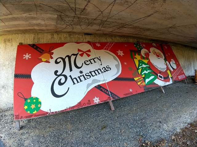 ホームの下にはソノ時に使われてたと思しきクリスマスの看板があり、