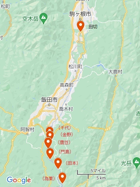 で宿泊地にしていた飯田市より更に北の飯島町と言う所にあります。