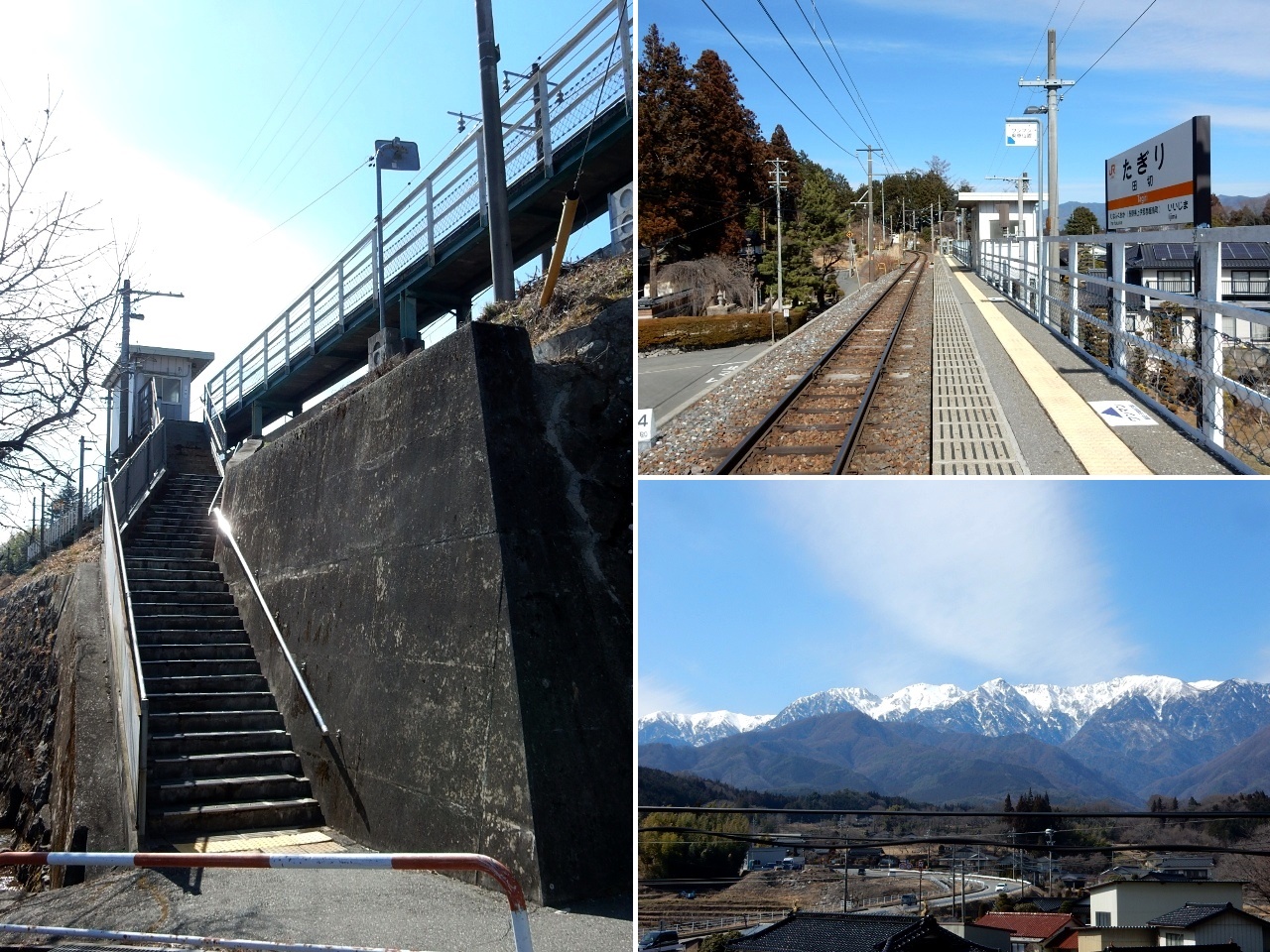 が1つのみの構造で、ホームからは木曽山脈の山々がよく見えました。