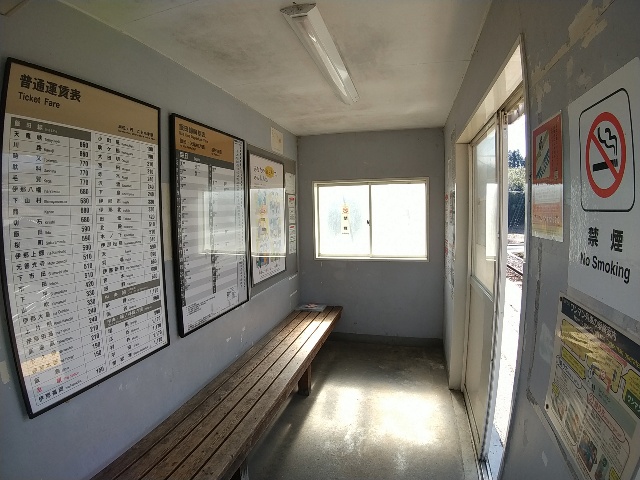 ローカル線の途中駅として一般的なタイプの待合室です。駅ノートは
