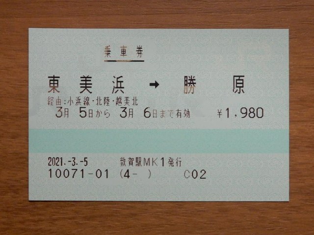 敦賀駅に寄り道してクレーム除けの乗車券は「東美浜-勝原」で購入。