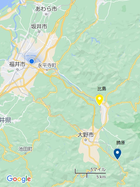 比島と勝原は路線こそ別ですが、山を1つ挟んだぐらいの所にある