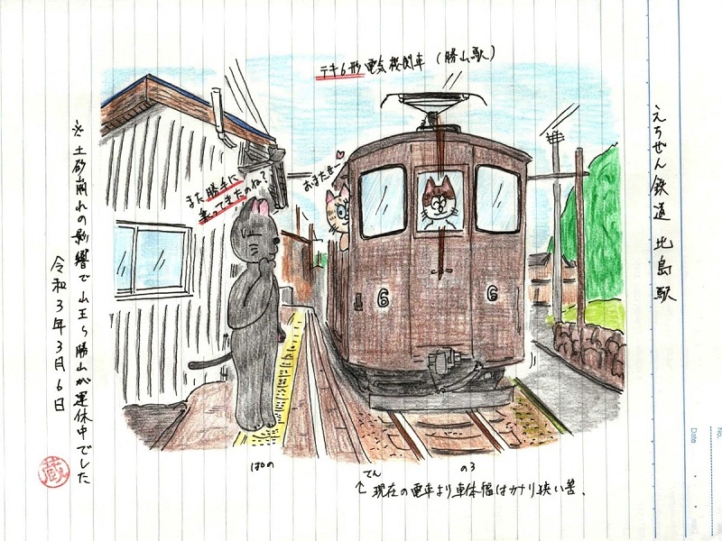 …電車が不通なので、のろは勝山駅まで行って同駅に保存してある
