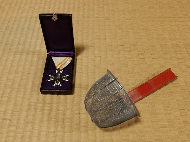ソレはいいとして何で勲章と一緒に味噌濾しのザルが出て来るか?