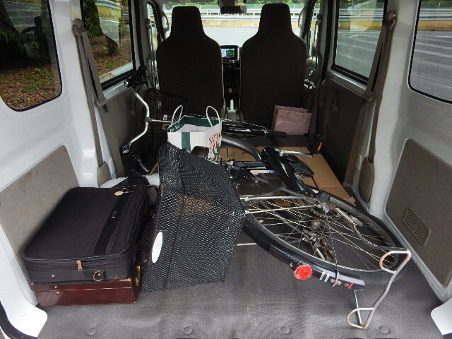 事で、まずはレンタカー屋さんで軽貨物を借りてきまして、自転車と