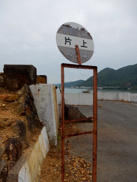 傍らに「宇野バス/片上」と書かれたバス停らしき標識がありました。