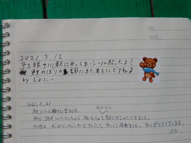 同駅の駅ノートは、付近のゲストハウス「かっぱバックパッカーズ」