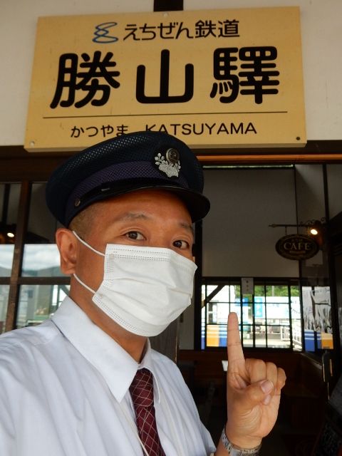 永平寺線の終点である勝山駅に到着しておりますクラ駅長です。
