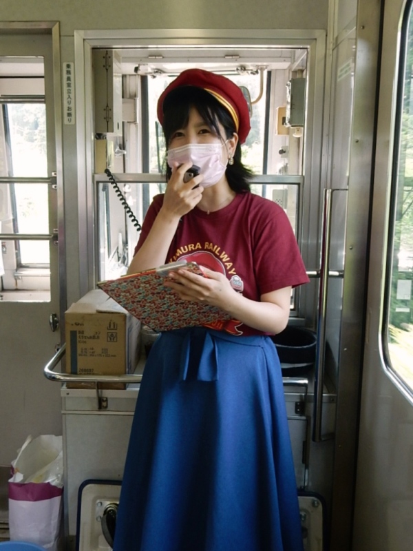 帰りの車内では、まず社長によるアテンダントさん体験。