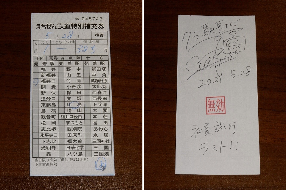 そして社長が往路から書いてるのが、当日限定の車内補充券です。