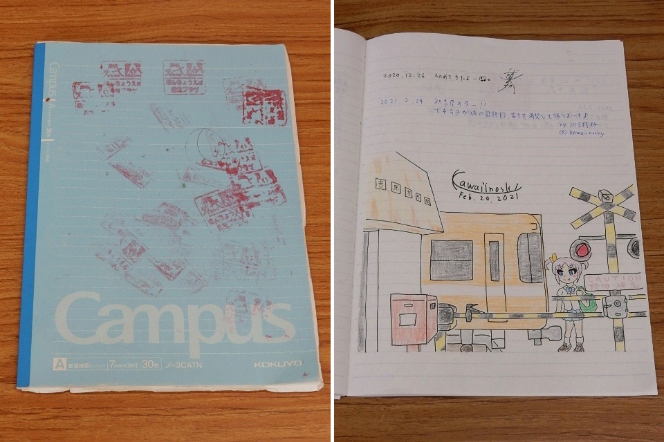 ココで一泊して吉原本町駅なのですが、駅ノートが置かれている