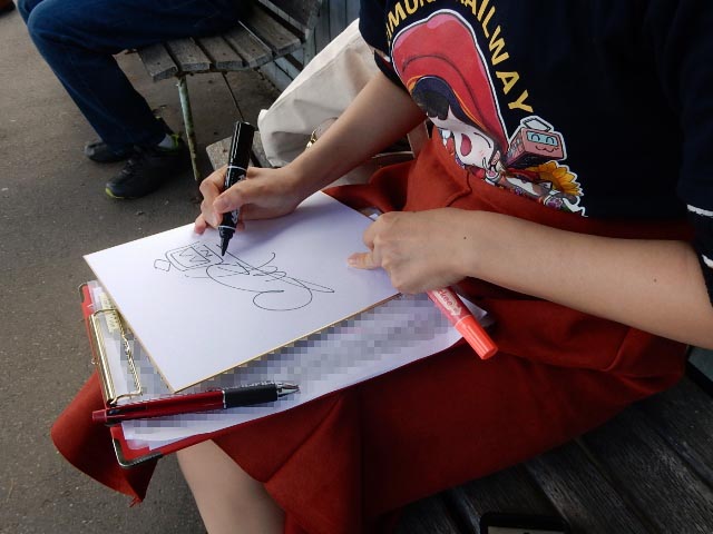 に人が写り込まないので便利でしょ。色紙は金沢で乗り換えの時に
