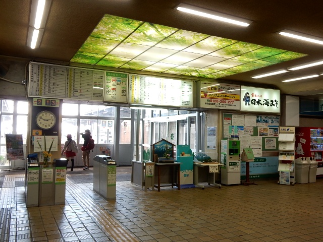 行き止まりの駅なので車止めの真向かいに改札がある感じです。