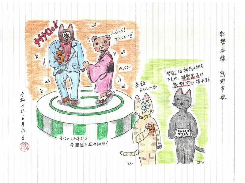 さて絵の方は…「那智黒」と言う黒飴のテレビCMをネタにしました。