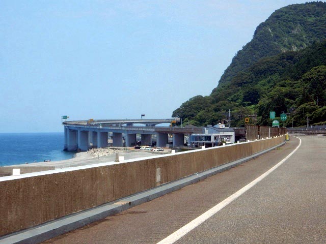 左は列車から時々見てた親不知付近、北陸自動車の高架が海に
