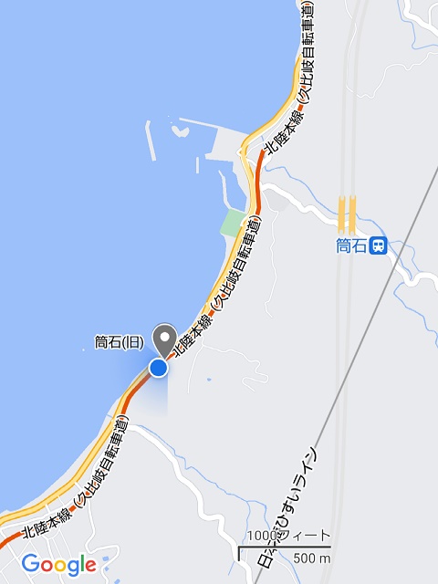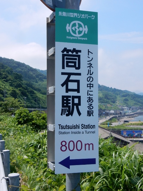 そして現在の筒石駅の位置を示す看板が出てきました。斜坑入口
