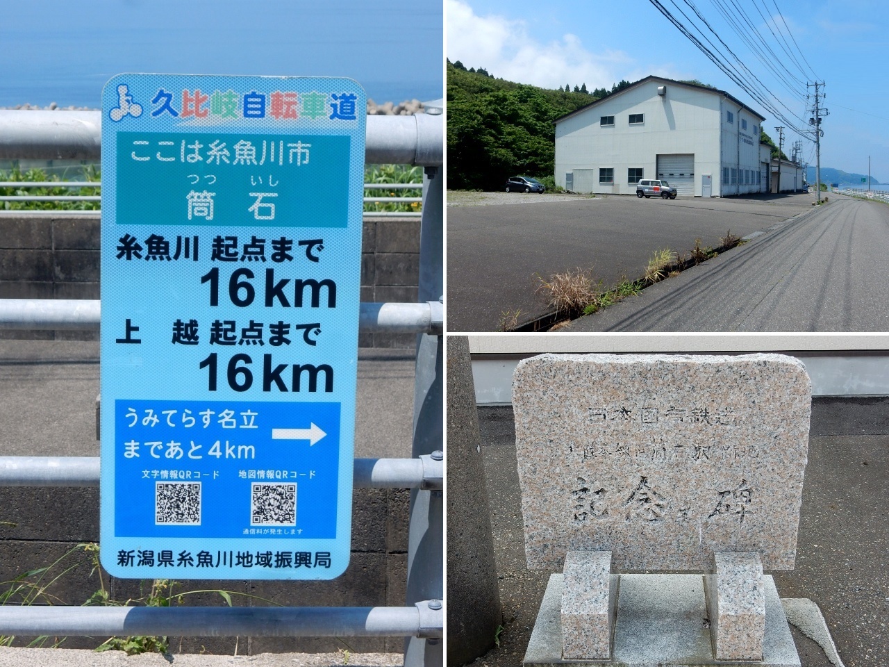 元の筒石駅跡には石碑が建てられており、現在は農協の倉庫などが