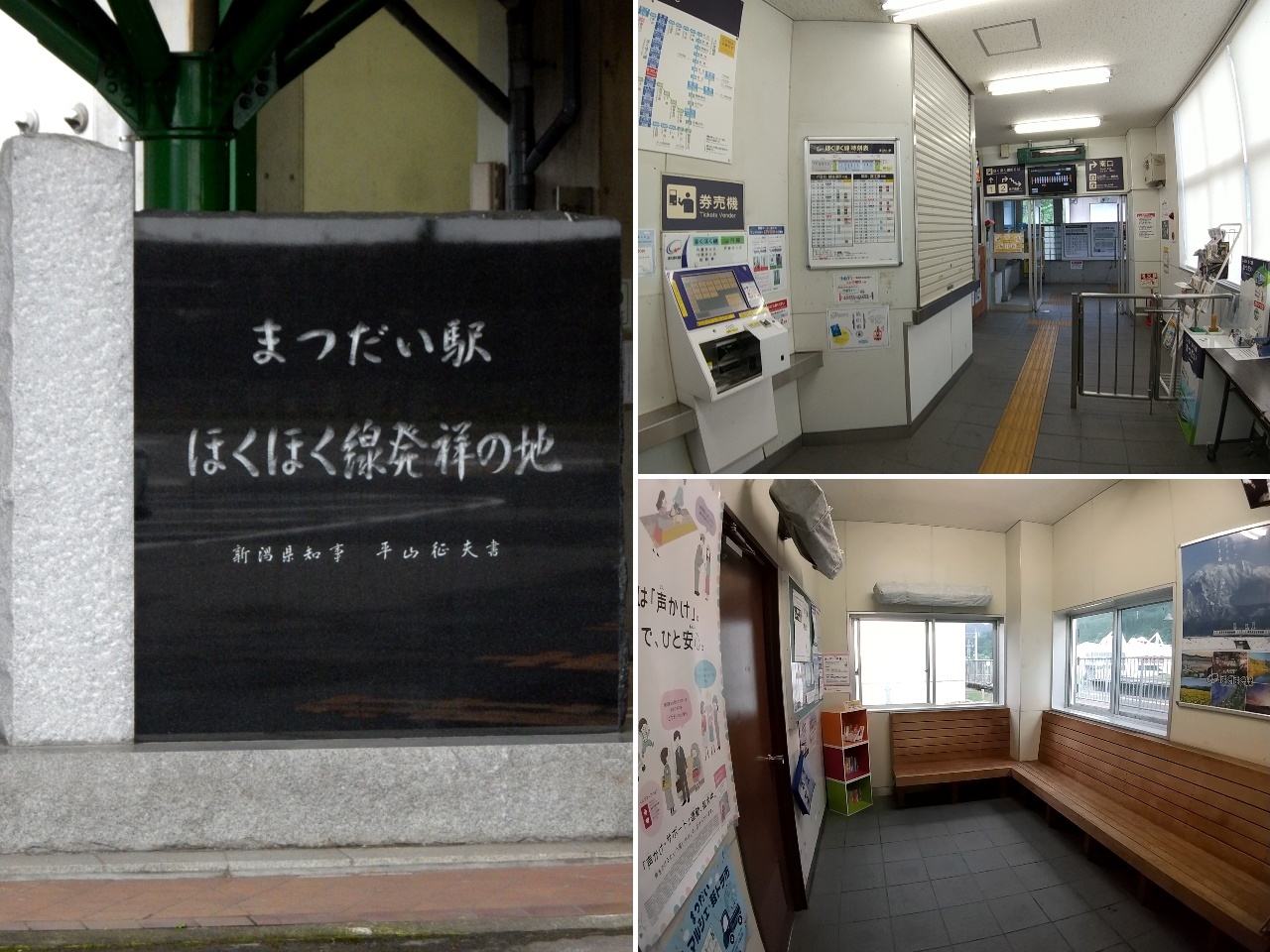 同駅はほくほく線の発祥地であり、新型車両を使った同線経由の