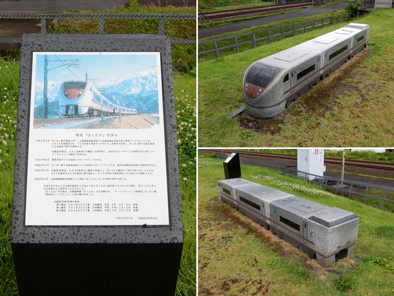 で北越急行版の681系を模した石造物(ベンチなのかも知れん)が