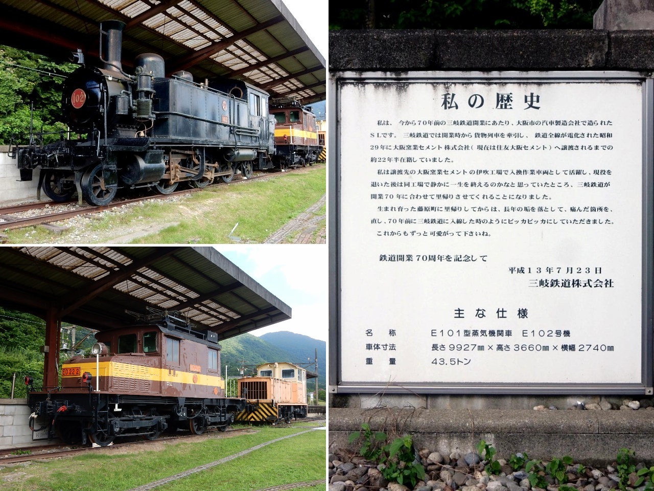保存車両のうち、蒸気機関車のE102号機は同社の開業時に使用
