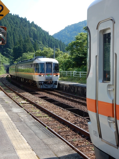 何かしら通るもんで、普通列車と特急「ひだ」の交換が見れました。