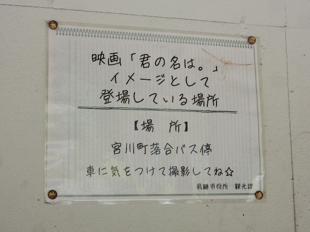 バス停がありまして、コレがアニメ映画の「君の名は。」に登場したと