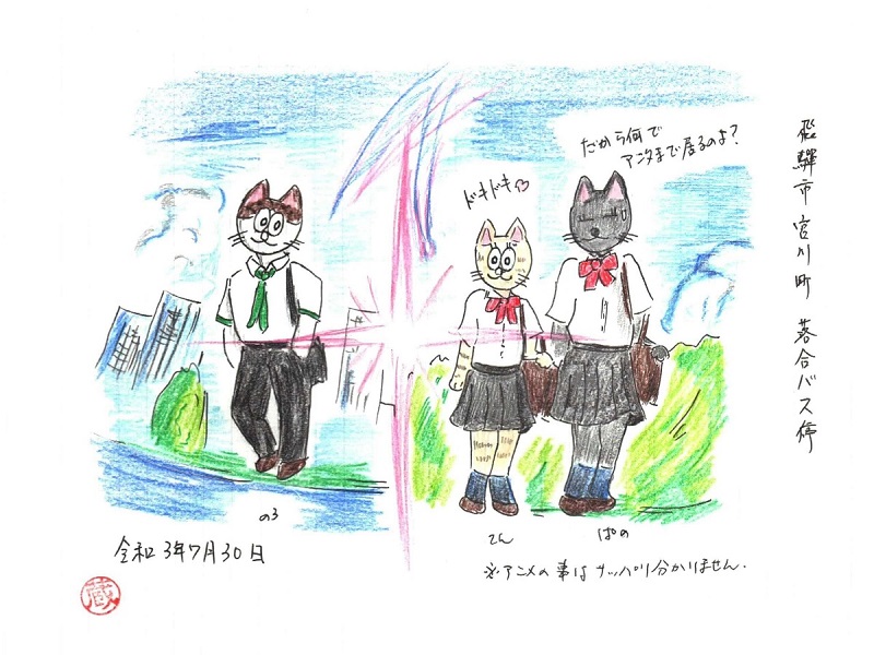そしてアニメ作品のワンシーンとして、このバス停が登場する場面