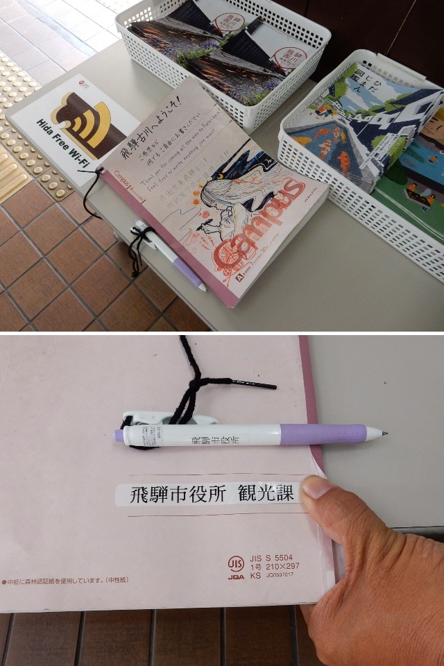 裏表紙にテプラで「飛騨市役所観光課」と貼ってあります。