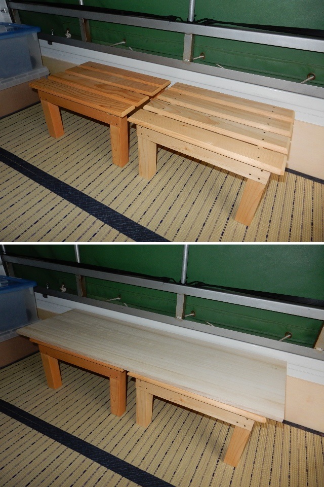 取り敢えず実家にあった踏み台を2個並べて、買い足した天板を