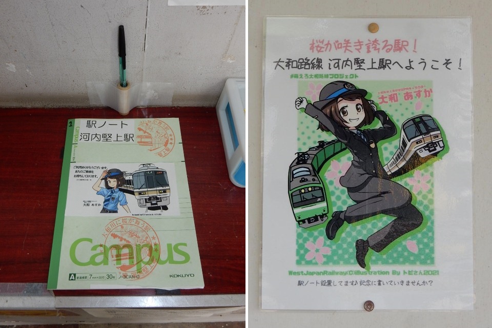 駅ノートは出札口の横にあります。「萌えろ大和路線プロジェクト」