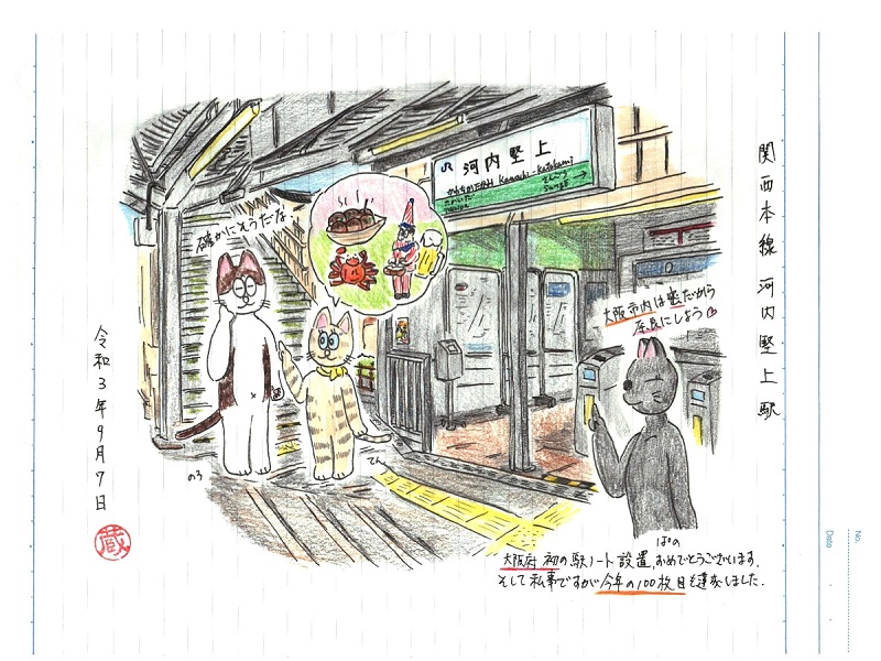 初の大阪府内の設置である事と、この駅の絵を以て今年の100枚目