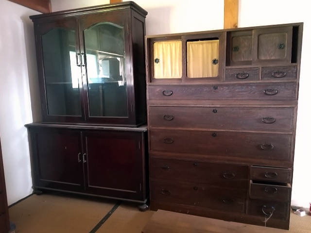 箪笥が幾つか存在しました。…向かって右の桐箪笥とか、新品なら