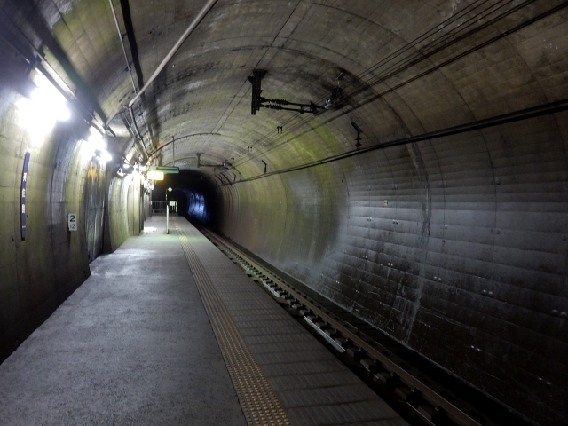 同じトンネル駅の筒石も、ホームと通路は扉で仕切られてますが