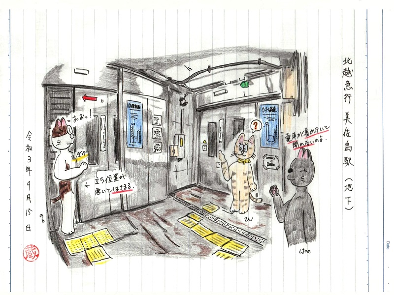 向かい、続いては地下待合室のノートを描く事にしますクラ駅長です。
