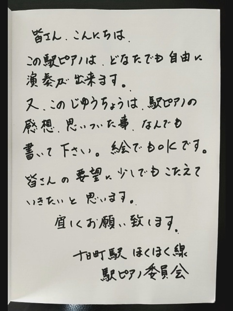 で「ほくほく線 駅ピアノ委員会」