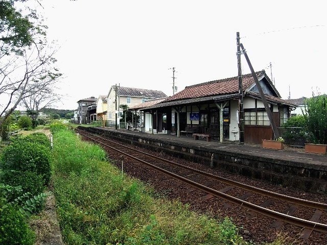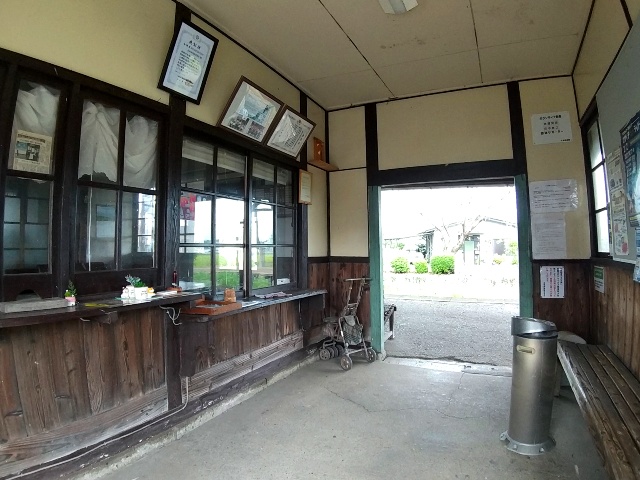 木造駅舎の駅ですが、駅務室が解放されておらず、沿線の設置駅