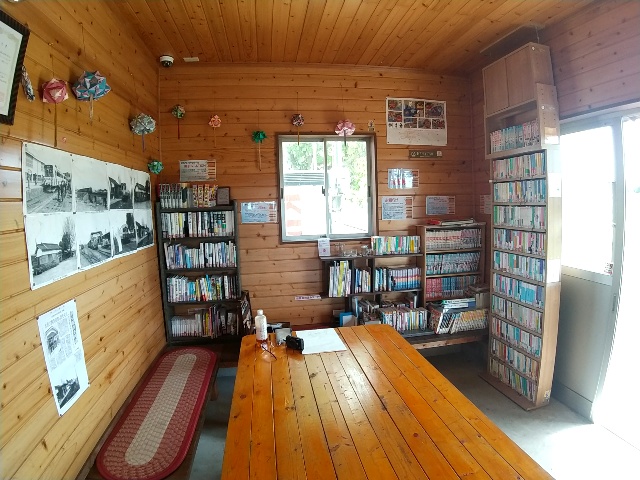 地域の人が持ち寄ったらしい本で、ミニ図書館が設置されています。