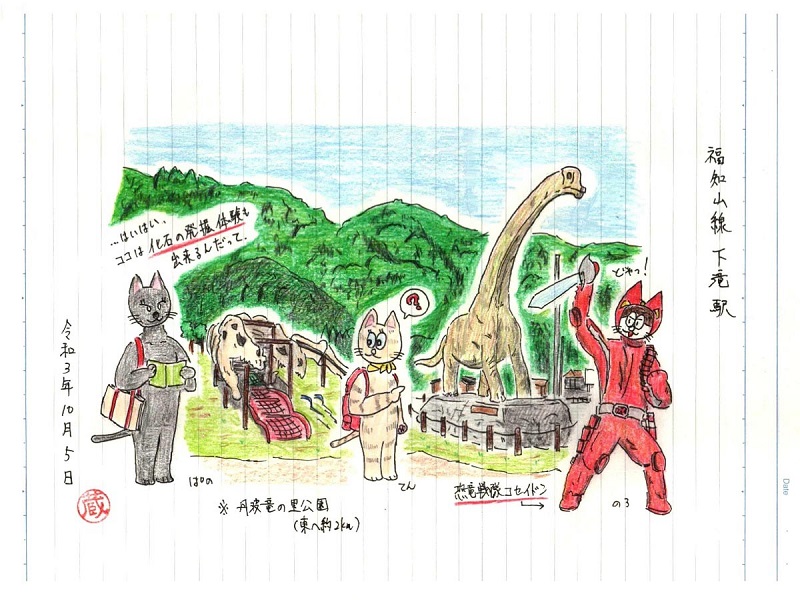 過去に近くで恐竜の化石が出土した事から、同駅のある丹波市では